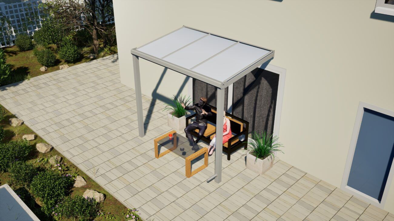 Bei der Bestellung eines maßgeschneiderten Terrassenüberdachungsprojekts oder eines anderen Entwurfs erhalten Sie eine kleine Markise kostenlos.